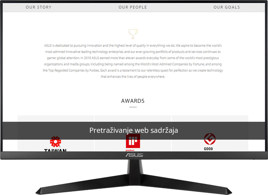 Integrisani ASUS Blue Light Filter, sertifikovan od strane TÜV Rheinland-a, štiti oči od štetne plave svetlosti. Postavkama se može brzo pristupiti putem prikaza na kranu (OSD) menija, a intuitivni klizač olakšava podešavanje nivoa filtera prema bilo kojem scenariju ili potrebi korisnika.